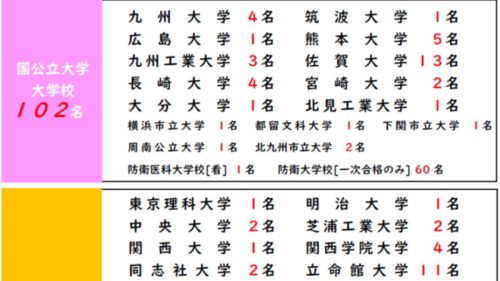 令和7年度入試 進路実績(令和7年4月10日現在)