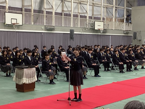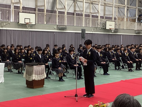 皆さんは、3年間の学校生活を通して、様々な経験をすることで、1年1年心身共に成長しながら、今日ここに晴れの日を迎えました。