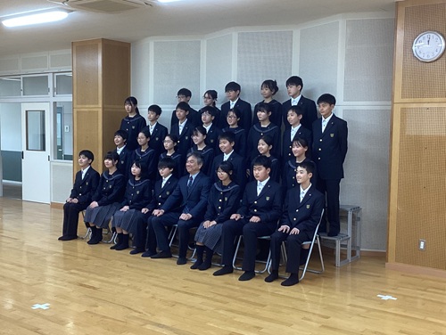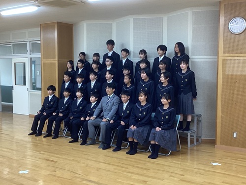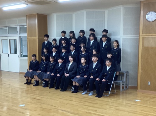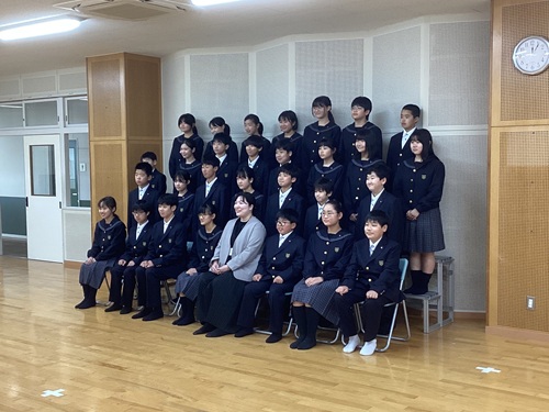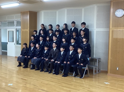 次に、体育館に移動して学年集会を行うことで一体感を高め、最後は響ホールでクラス写真を撮影しました。