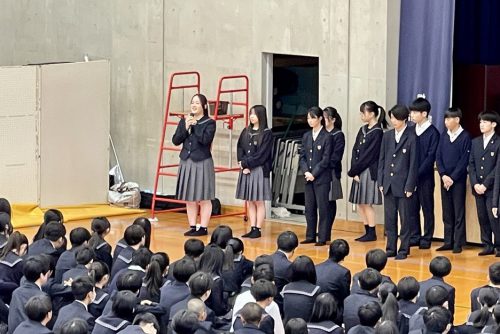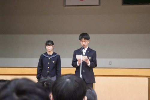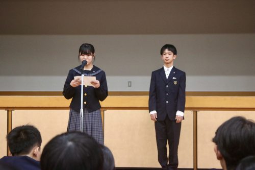 対面式では、中高それぞれ新入生の代表が挨拶し、八女学院に入学した喜びを伝えました。